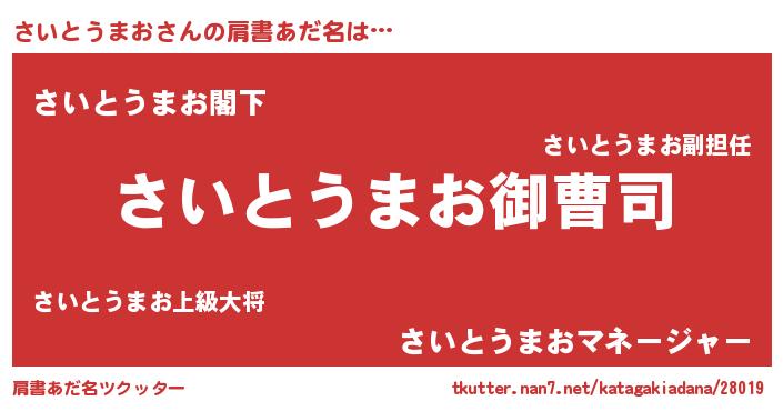 | 男性向けラノベタイトル風あだ名 | 『さいとうまおの憂鬱』 |