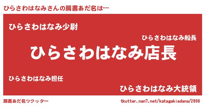 | ヒーロー風カッコイイあだ名 | 『スーパーヒラサワハナミ』 |