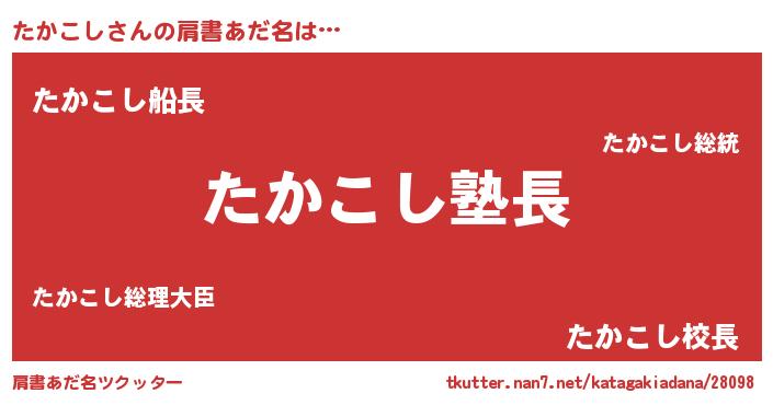 | ピコ太郎風あだ名 | 『タカ四郎』『ピコタ郎』『ピタ四郎』 |