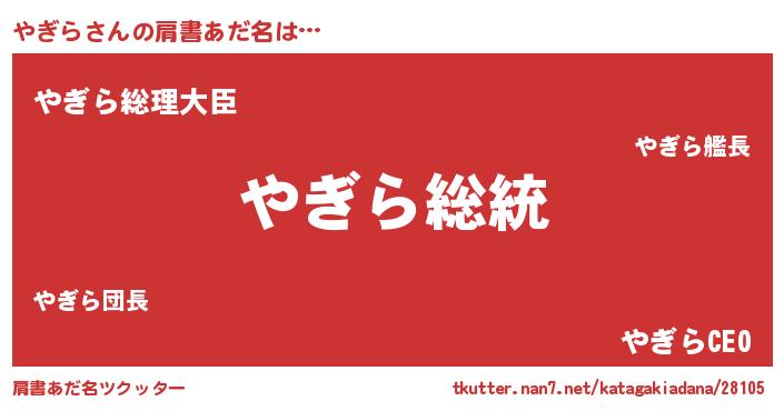| 意味不明あだ名 | 『自称やぎら』『やぎらフォーエバー』 |