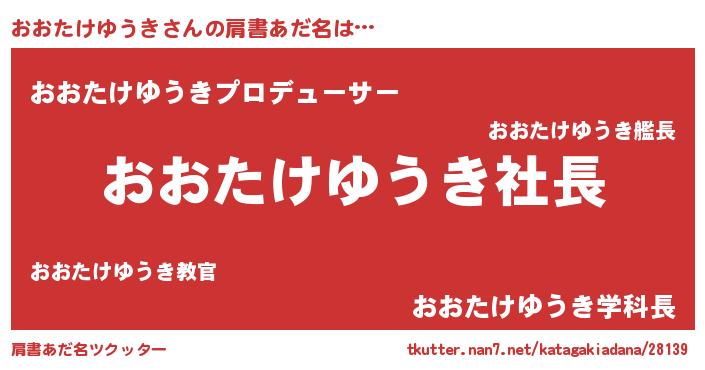 | 男性向けラノベタイトル風あだ名 | 『オオタケユウキアートオンライン』 |