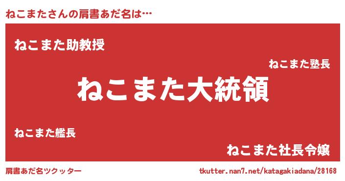 | ポケモン風あだ名 | 『ネコマダネ』『ネックウザ』 |