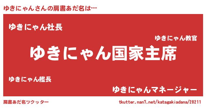 | 男性向けラノベタイトル風あだ名 | 『うちの娘の為ならば、俺はもしかしたらゆきにゃんも倒せるかもしれない。』 |