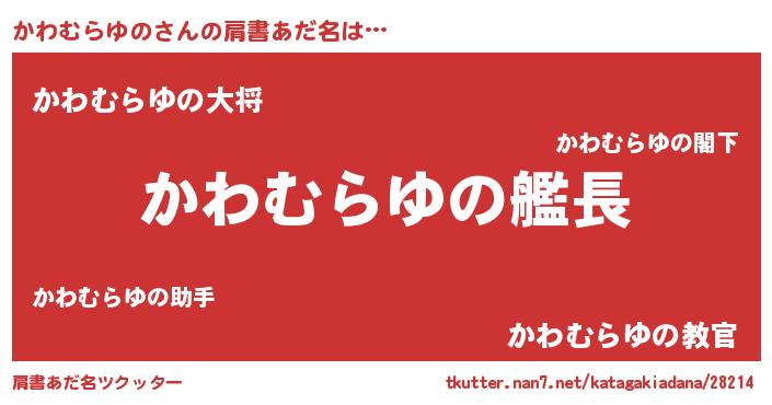 | 男性向けラノベタイトル風あだ名 | 『うちのかわむらゆのが世界を掌握している!』 |