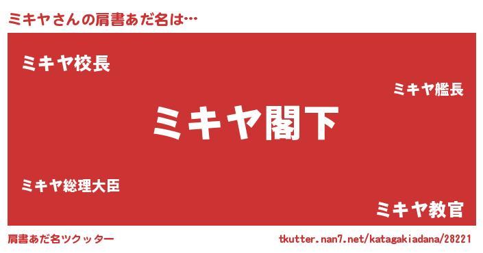 | 意味不明あだ名 | 『自称ミキヤ』『永久保存ミキヤ』 |