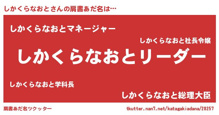 | 女子向けラノベタイトル風あだ名 | 『しかくらなおと様がみてる』 |