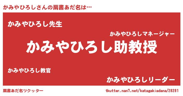 | ヘコむあだ名 | 『かみやひろし(笑)』『かみお』 |
