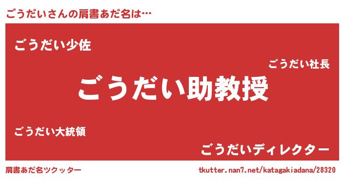 | ヒーロー風カッコイイあだ名 | 『友情の使者ごうだい』『仮面ゴウダー』 |