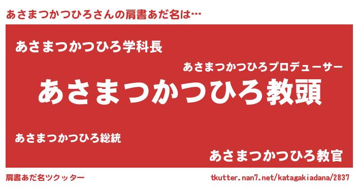 | 胡散臭い通販商品みたいなあだ名 | 『絶対に幸福をもたらす健康食品…その名も「あさまつかつひろ」』 |