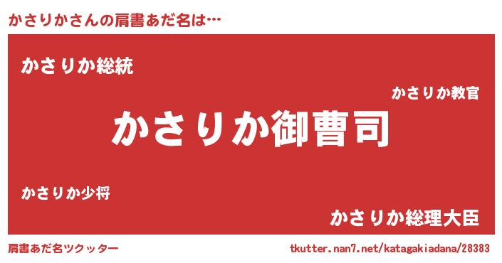 | 男性向けラノベタイトル風あだ名 | 『かさりかの憂鬱』『魔弾の王とかさりか』 |