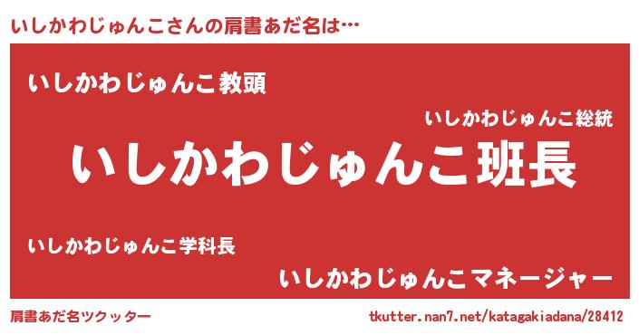 | 男性向けラノベタイトル風あだ名 | 『ダンジョンにいしかわじゅんこを求めるのは間違っているだろうか』 |