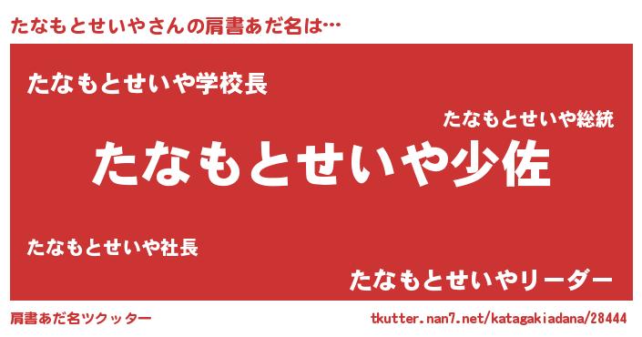 | 男性向けラノベタイトル風あだ名 | 『たなもとせいや~年齢イコール彼女いない歴の魔法使い~』 |