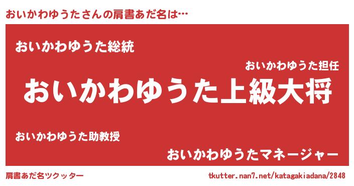 | 男性向けラノベタイトル風あだ名 | 『オイカワユウタスレイヤー』 |