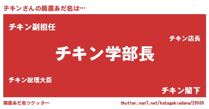 | 女子向けラノベタイトル風あだ名 | 『チキン恋絵巻』『チキン姫と円卓の騎士』 |