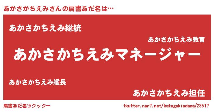 可愛いあだ名 | 『あかうちぇる』『あかさかちえみママ』 |