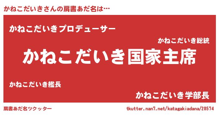 | 女子向けラノベタイトル風あだ名 | 『かねこだいきの雑貨屋さん』 |