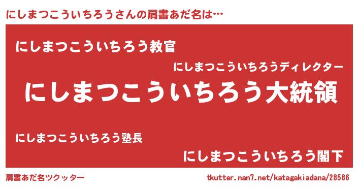 | 意味不明あだ名 | 『にしまつこういちろうフォーエバー』 |