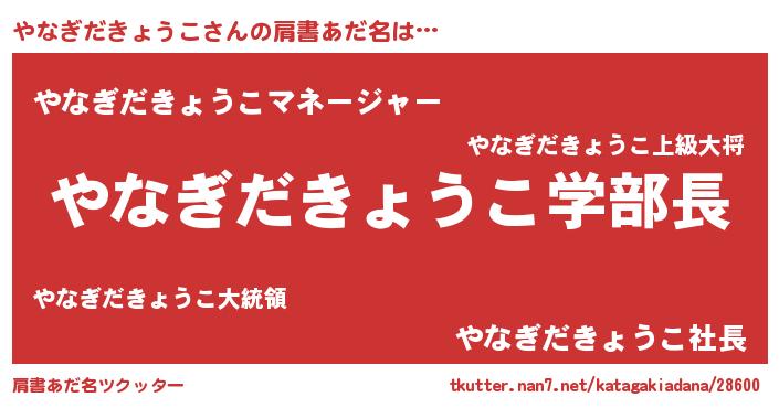 | 男性向けラノベタイトル風あだ名 | 『おまえをオタクにしてやるから、俺をやなぎだきょうこにしてくれ! 』 |