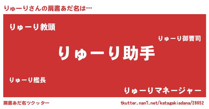 | ヘコむあだ名 | 『りゅーり(笑)』『りゅふぇ~』 |