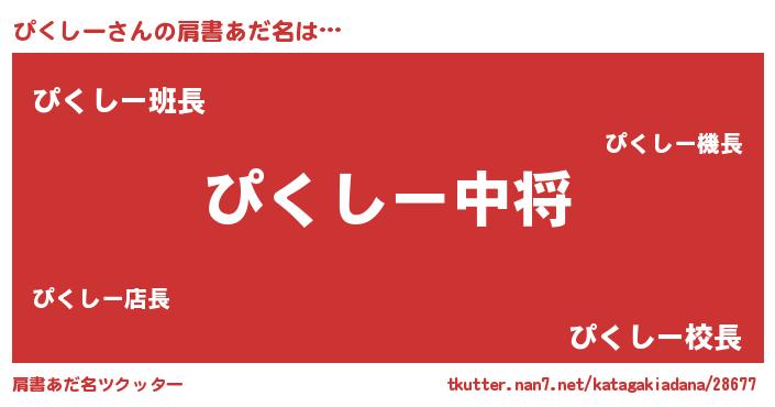 | 男性向けラノベタイトル風あだ名 | 『ぴくしー~年齢イコール彼女いない歴の魔法使い~』 |