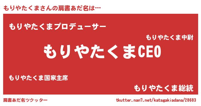 | ヒーロー風カッコイイあだ名 | 『スーパーモリヤタクマ』『黄金騎士モリ』 |