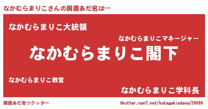 | 男性向けラノベタイトル風あだ名 | 『Re:なかむらまりこから始める異世界生活』 |