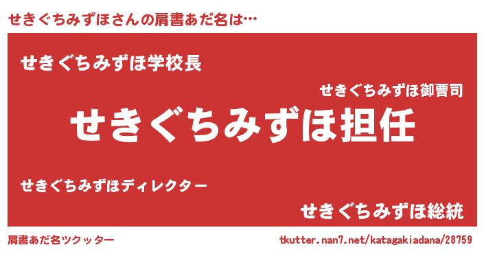| 男性向けラノベタイトル風あだ名 | 『せきぐちみずほという概念が存在しない退屈な世界 』 |