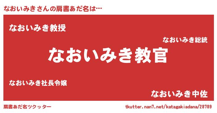 | 男性向けラノベタイトル風あだ名 | 『この素晴らしい世界になおいみきを!』 |