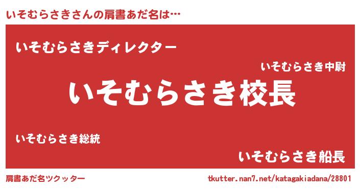 | ヒーロー風カッコイイあだ名 | 『ネオイソムラサキ』『仮面イソダー』 |