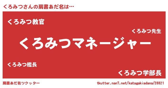 | ヘコむあだ名 | 『くろみつ(笑)』『くろもー』 |