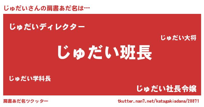 | 意味不明あだ名 | 『とにかく怪しいじゅだい』 |