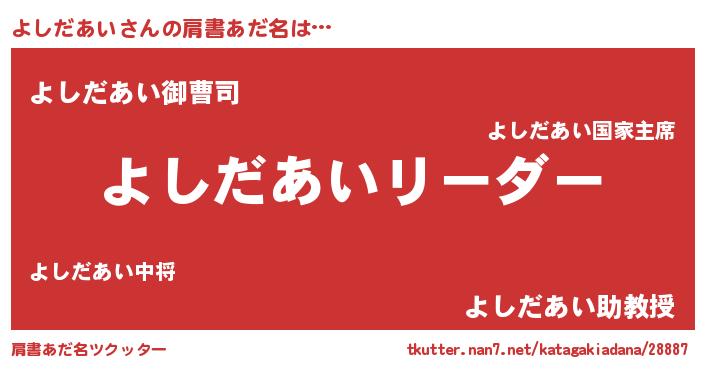 | ヒーロー風カッコイイあだ名 | 『銀牙騎士ヨシ』『スーパーヨシダアイ』 |