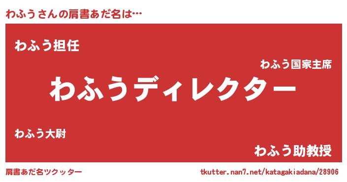 | ヘコむあだ名 | 『わふう(笑)』『なまこ酢』『わふを』 |