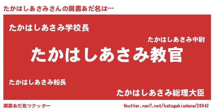 | 男性向けラノベタイトル風あだ名 | 『魔弾の王とたかはしあさみ』 |