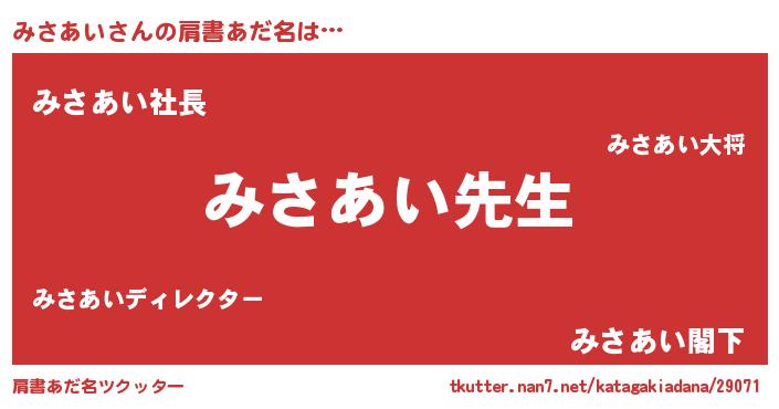 | ヘコむあだ名 | 『みさあい(小並感)』『みさにー』 |
