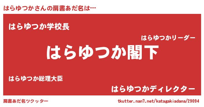 | 女子向けラノベタイトル風あだ名 | 『はらゆつかなんてお断りですっ。』 |