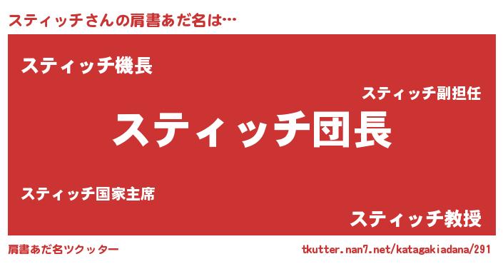 | 意味不明あだ名 | 『とにかく怪しいスティッチ』 |