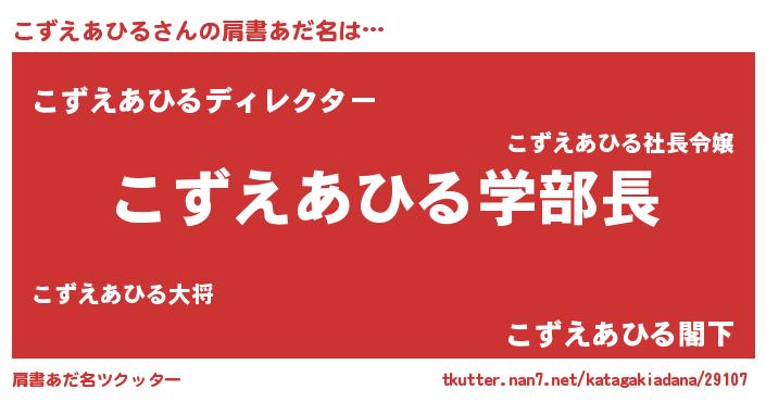 | ヘコむあだ名 | 『こずっふぃ~』『こずえあひる(爆)』 |