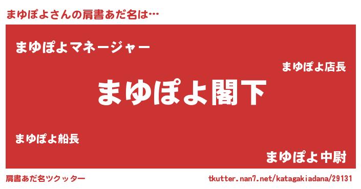 | 男性向けラノベタイトル風あだ名 | 『Re:まゆぽよから始める異世界生活』 |