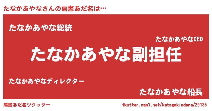 | ヘコむあだ名 | 『たなかあやな(遠い目)』『たなもー』 |