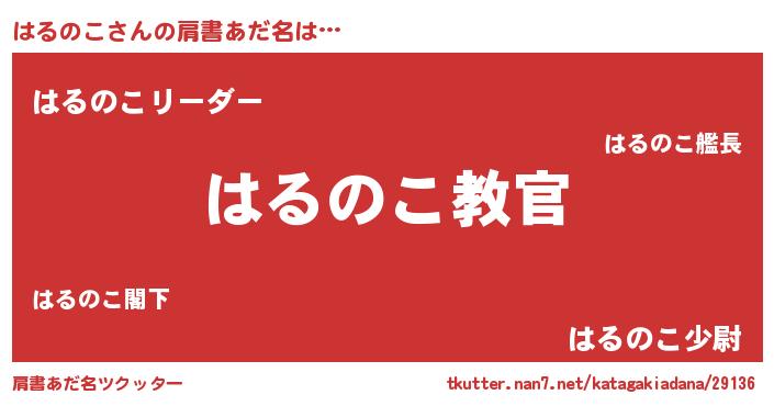 | 男性向けラノベタイトル風あだ名 | 『魔弾の王とはるのこ』 |