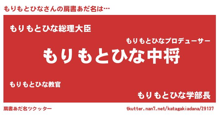 | 男性向けラノベタイトル風あだ名 | 『転生したらもりもとひなだった件』 |