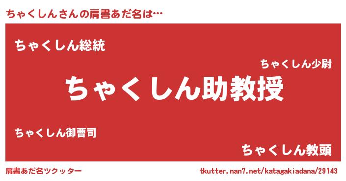 | ヒーロー風カッコイイあだ名 | 『慈愛の使者ちゃくしん』『仮面チャダー』 |