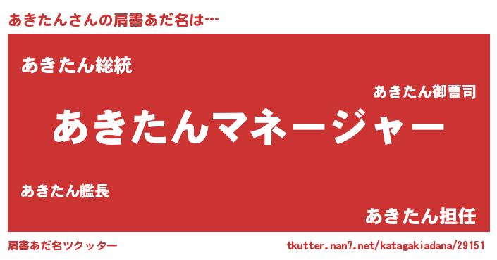 | ヘコむあだ名 | 『あきたん(小並感)』『あきもー』 |