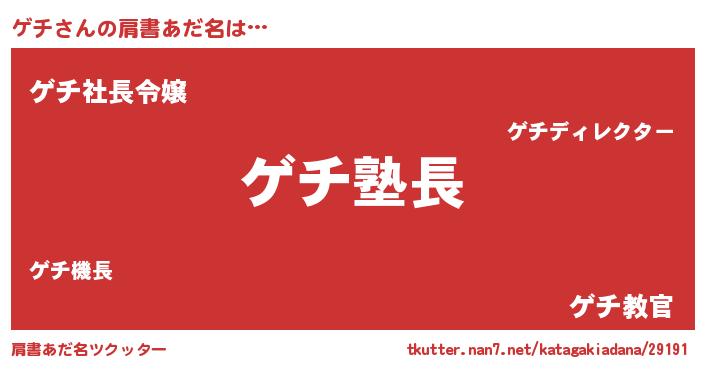 | ピコ太郎風あだ名 | 『ゲチ四郎』『ゲコ五郎』『ピゲ二郎』 |