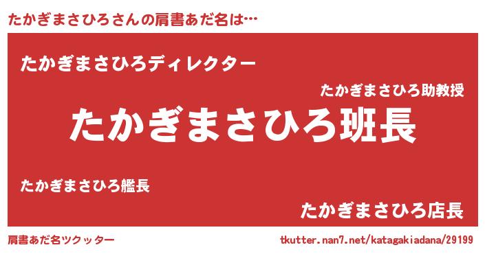| ポケモン風あだ名 | 『ヒタカギマサヒロ』『タカゴンZ』 |