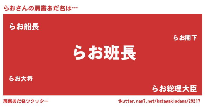 | 女子向けラノベタイトル風あだ名 | 『らお様がみてる』『らお伯爵の花嫁』 |