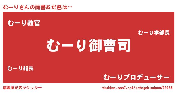 | 男性向けラノベタイトル風あだ名 | 『むーりの憂鬱』『緋弾のムーリ』 |