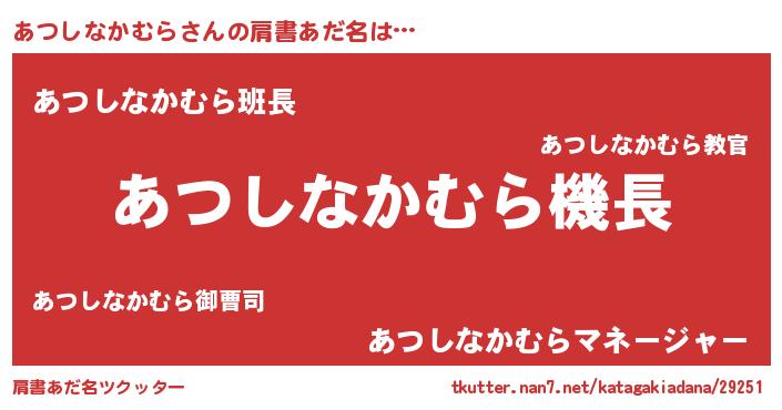 | ヘコむあだ名 | 『あつっちょ』『あつにゅー』 |