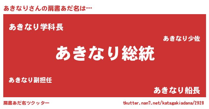 | ヘコむあだ名 | 『あきなり(遠い目)』『あきっふぃ~』 |